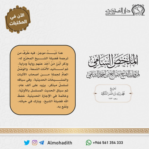 Manager: هاشم أبو بكر جندان P: 00966.566687766/00966.561354333/20.111556115/ E: almohadth5@gmail.com A: الرياض- السعودية Directions https://almohadith.com/ar/p/RaWWq